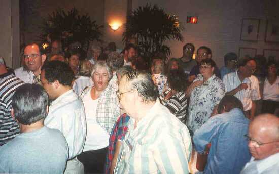 | Pat Richards and assistant at the Publications Sales table | Richard Holder (front and center)surveying the crowd before the opening of plant sales |