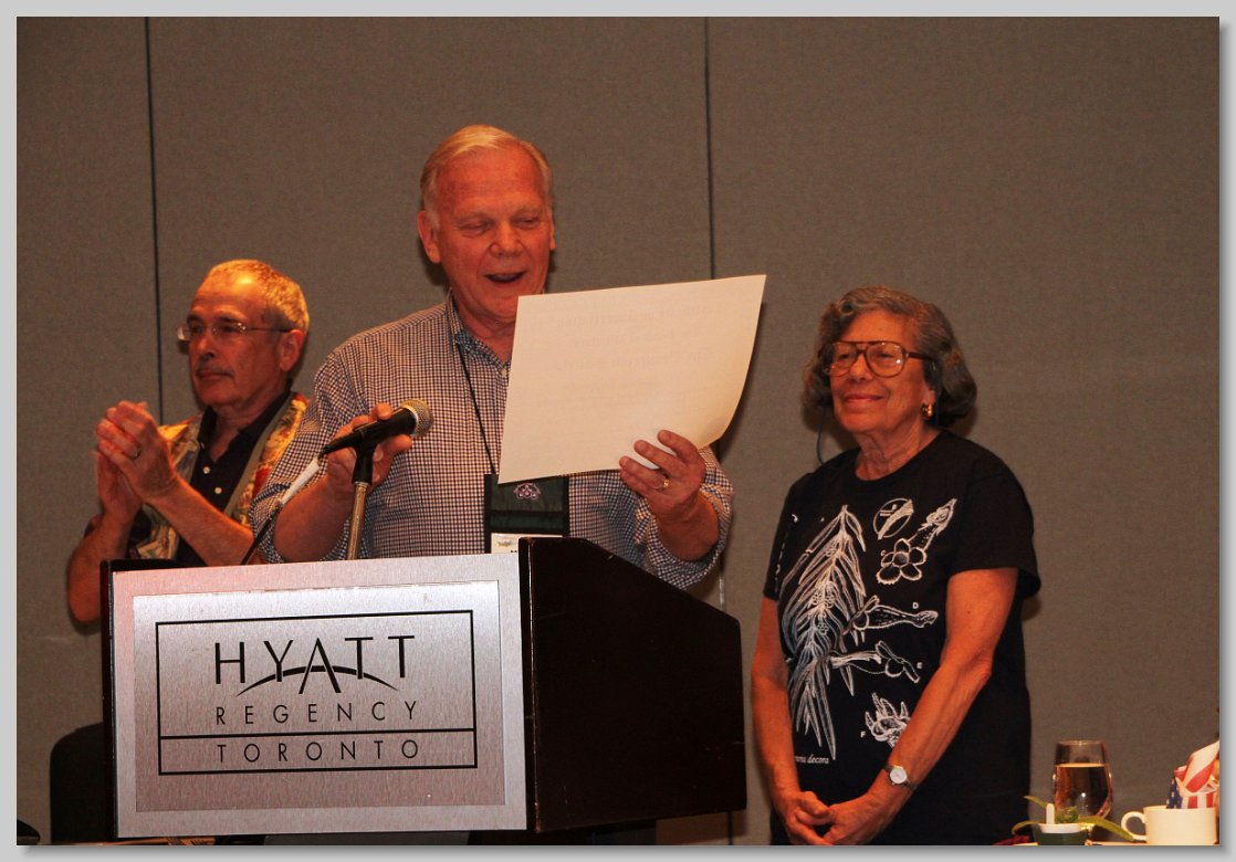 Michael Riley (center) presenting an Award of Appreciation to Carolyn Ripps
