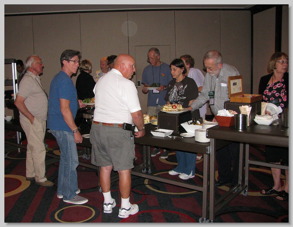 The Chapter Social: Doris Brownlie enjoying the food and welcoming first-time attendee Drew Norris and everyone to Toronto
