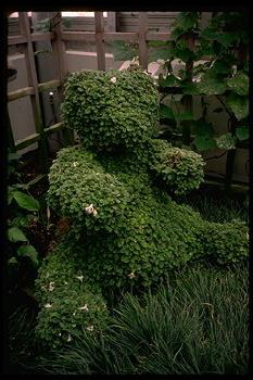 | A topiary teddy bear of Alsobia dianthiflora at the Chicago Botanic Garden greenhouse | Libby Watkins with her flower show entries all packed up. See you next year! |
