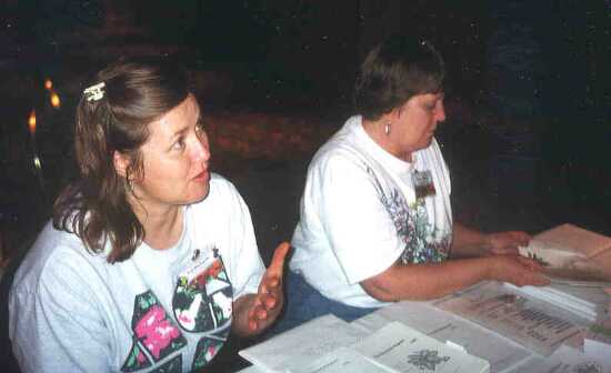 | Helen Freidberg and Bill Price cleanup at Traveller's Rest | The Seed and Publications Sales table is a popular spot |